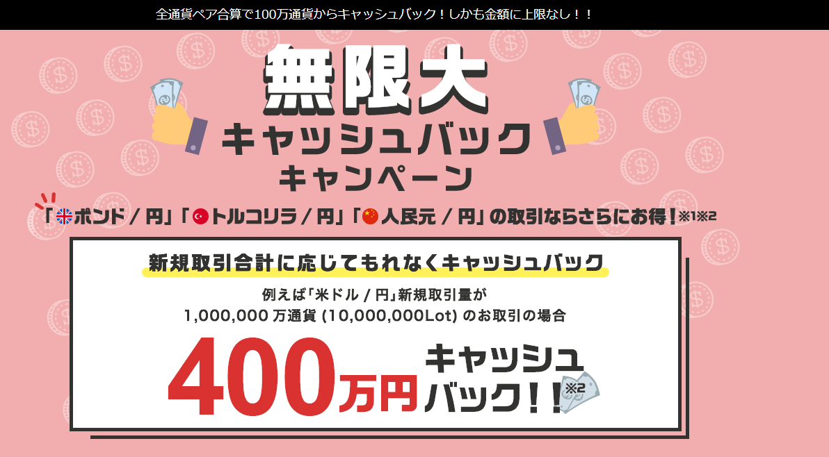 【外為どっとコム】無限大キャッシュバックキャンペーンを実施中!