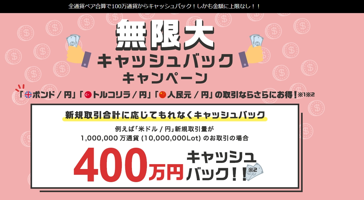期間中に「LIGHT FX」で口座を新規開設し、専用フォームからエントリーしたうえで、口座開設申し込み月の良く翌月末の最終営業日マーケットクローズまでに1回以上アプリで新規取引をすると1000円がキャッシュバックされるというものです。