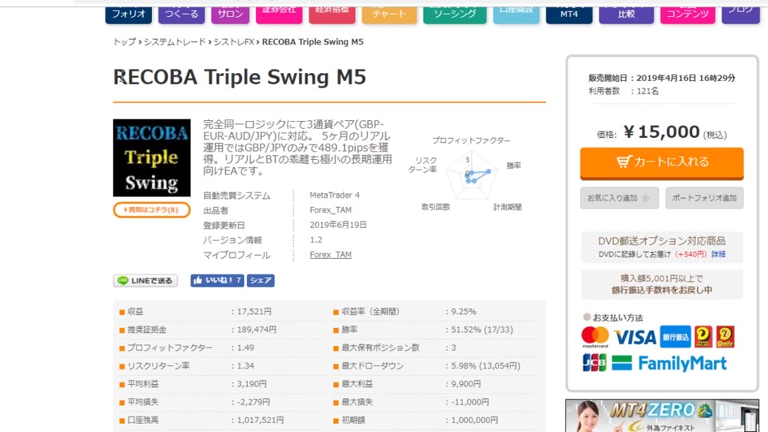 この動画では、RECOBA Triple Swing M5(出品者:Forex_TAM)に関して、下記項目を解説しています。