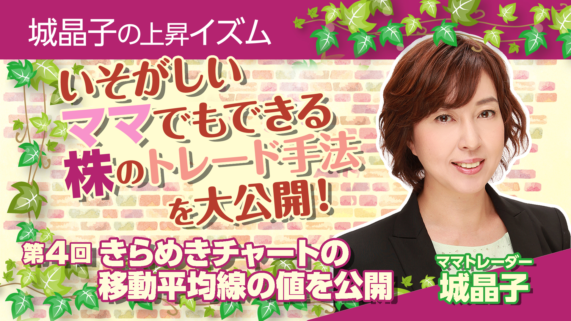 第4回目となる城晶子の上昇イズムでは【きらめきチャート】の移動平均線の値についてお話させていただきました。