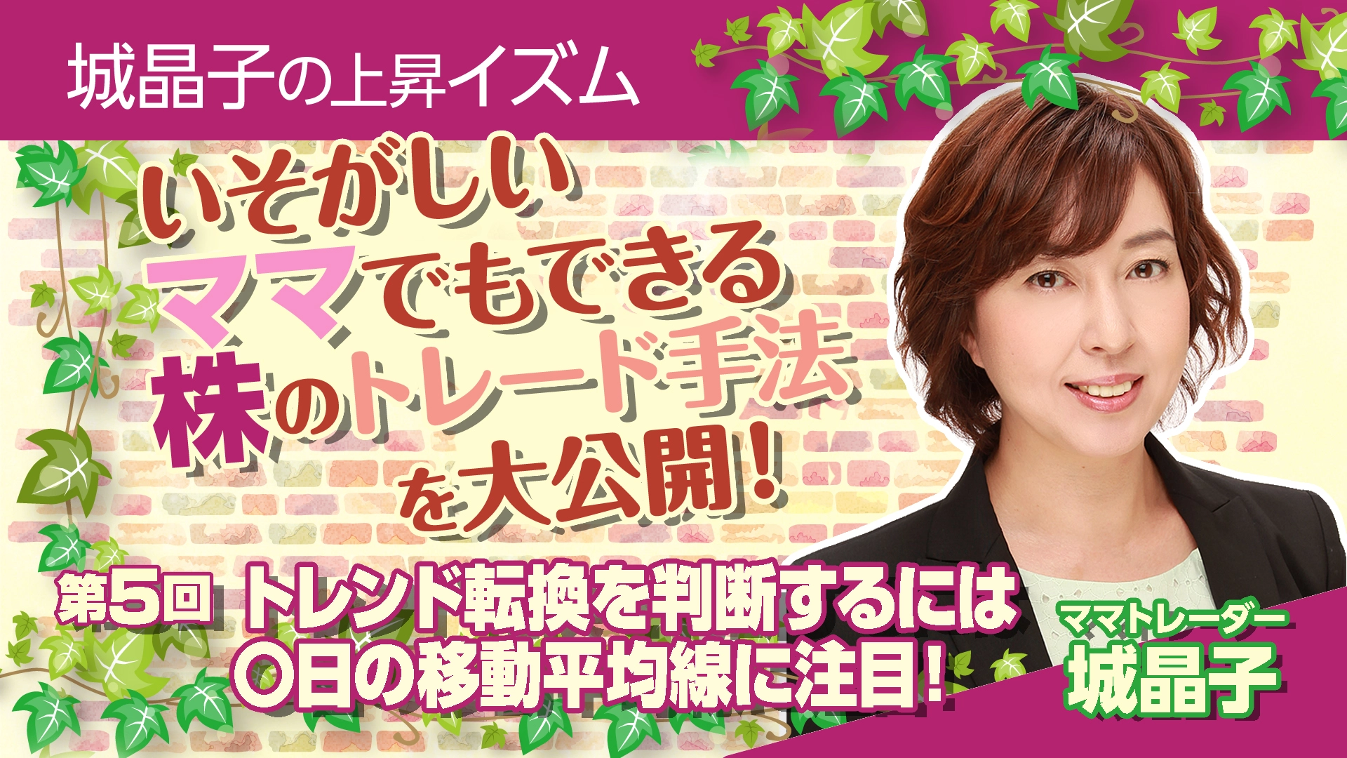 第4回目となる城晶子の上昇イズムでは【きらめきチャート】の移動平均線の値についてお話させていただきました。