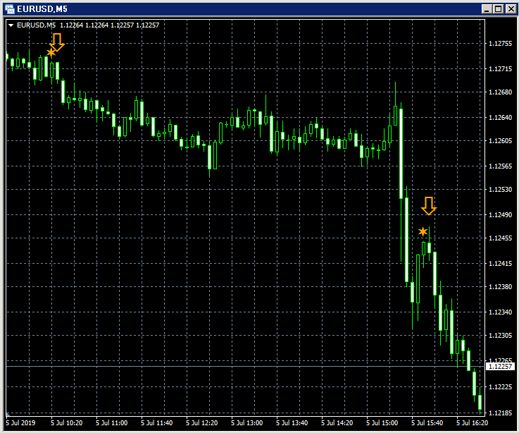 ユーロドル 5分足(2019年7月5日)