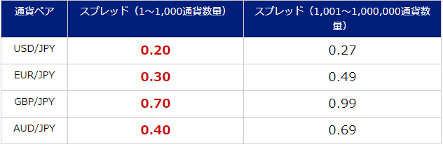 SBIFXトレードは、2019年6月29日から1回あたりの取引量に応じたスプレッドの区分の変更がありました。特にドル円は1000通貨までの取引量が1回あたり0.2銭という驚きの狭さのスプレッドとなっています。