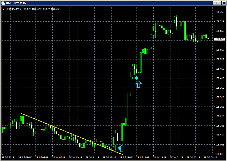 急騰急落にそなえる!?【チャートサインハンター「SRF2」】昨日のドル円5分足