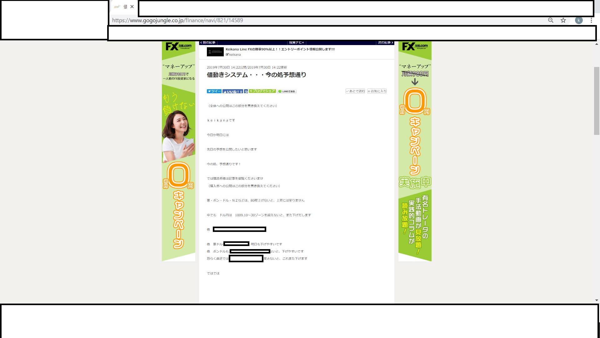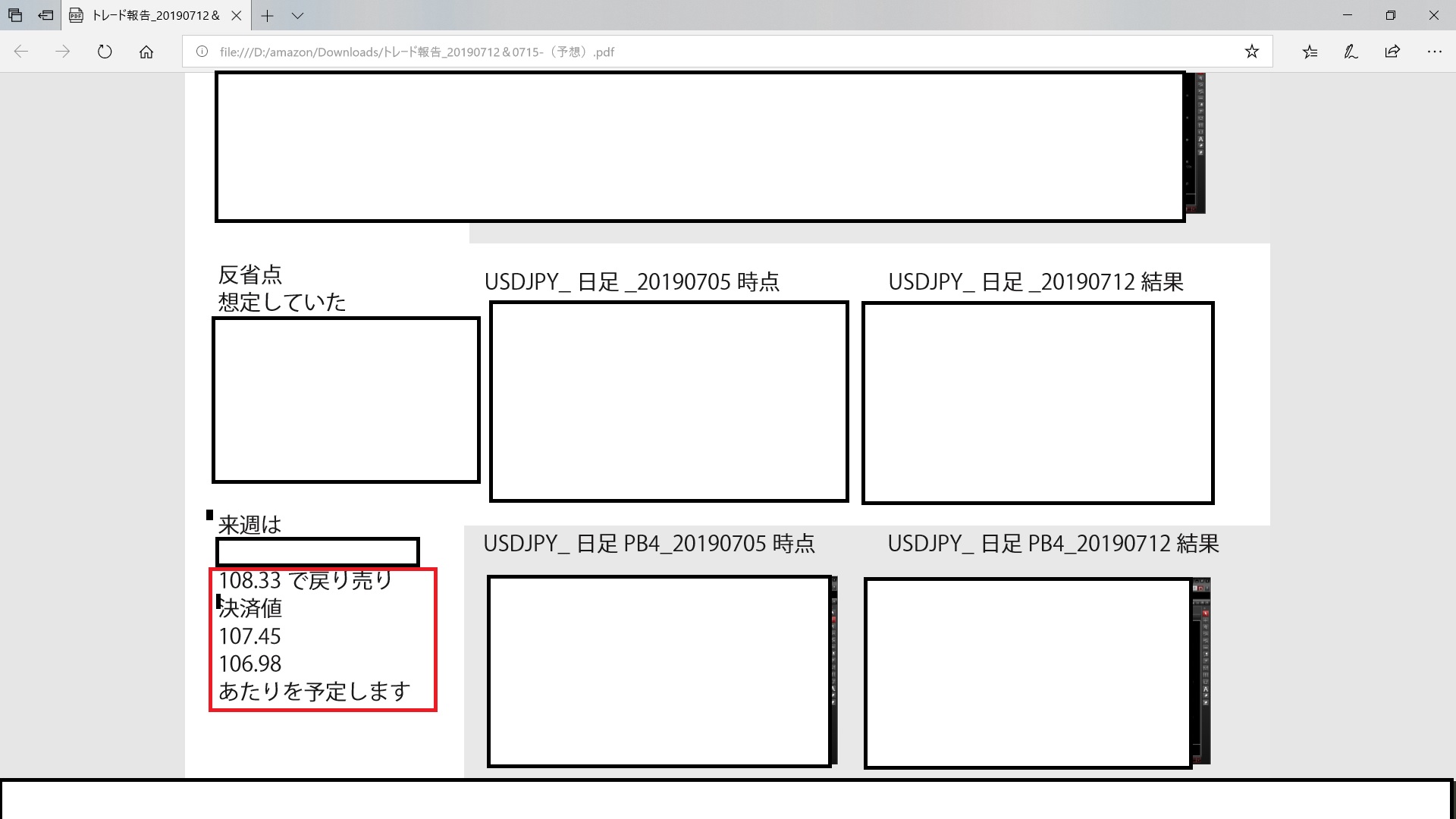 その週の高値は108.3~40あたりでした。そこから107付近まで落ちた地合いを予想してもらい、メールで送ってもらった画像です。