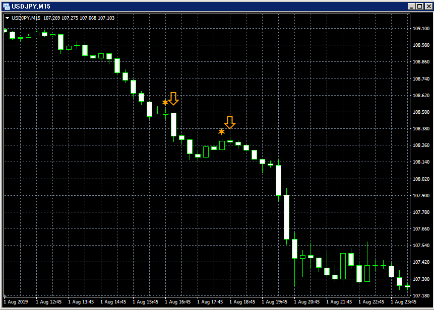 ドル円急落時の売りサイン【急騰急落にそなえる:チャートサインハンターSRF2】