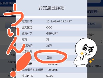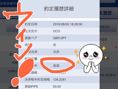 - 利益確定が60pips、損切りが−50pipsのOCO決済