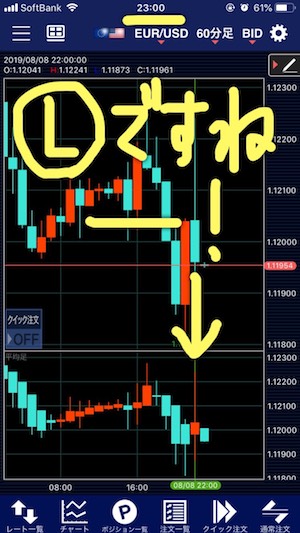 - 23時にユーロドルのチャートを開き、22時台の1時間平均足が反転している場合のみエントリー