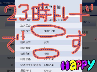 8月5日に、8月1日から保有していたユーロドルの買いポジションを+100pipsで利確しました。