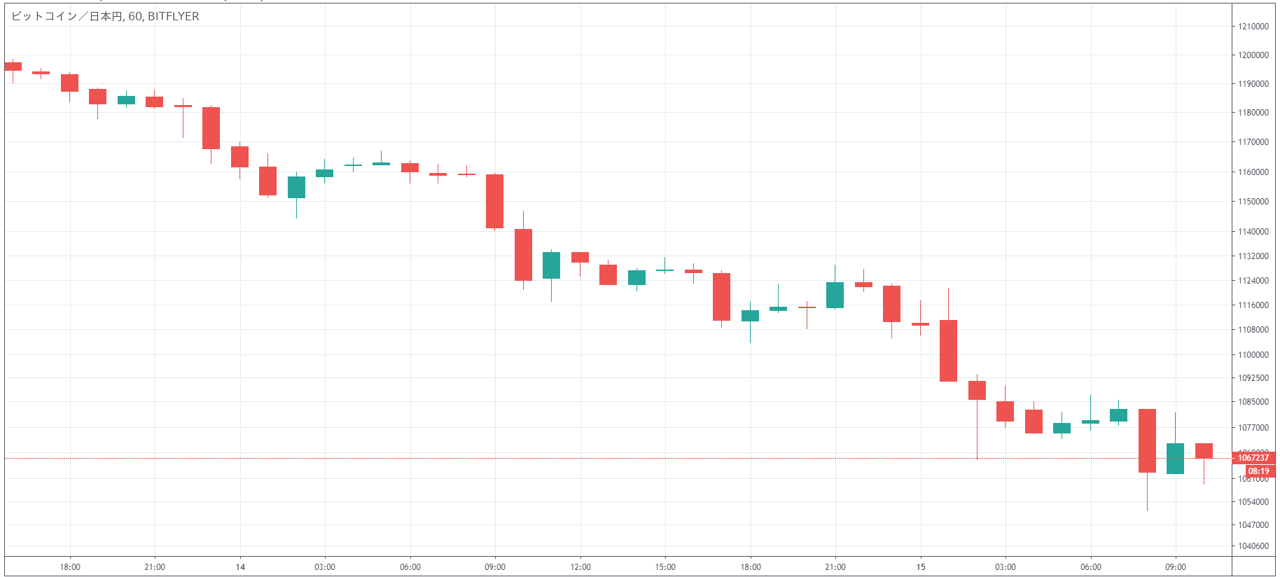 ■ビットコイン円、1時間足チャート