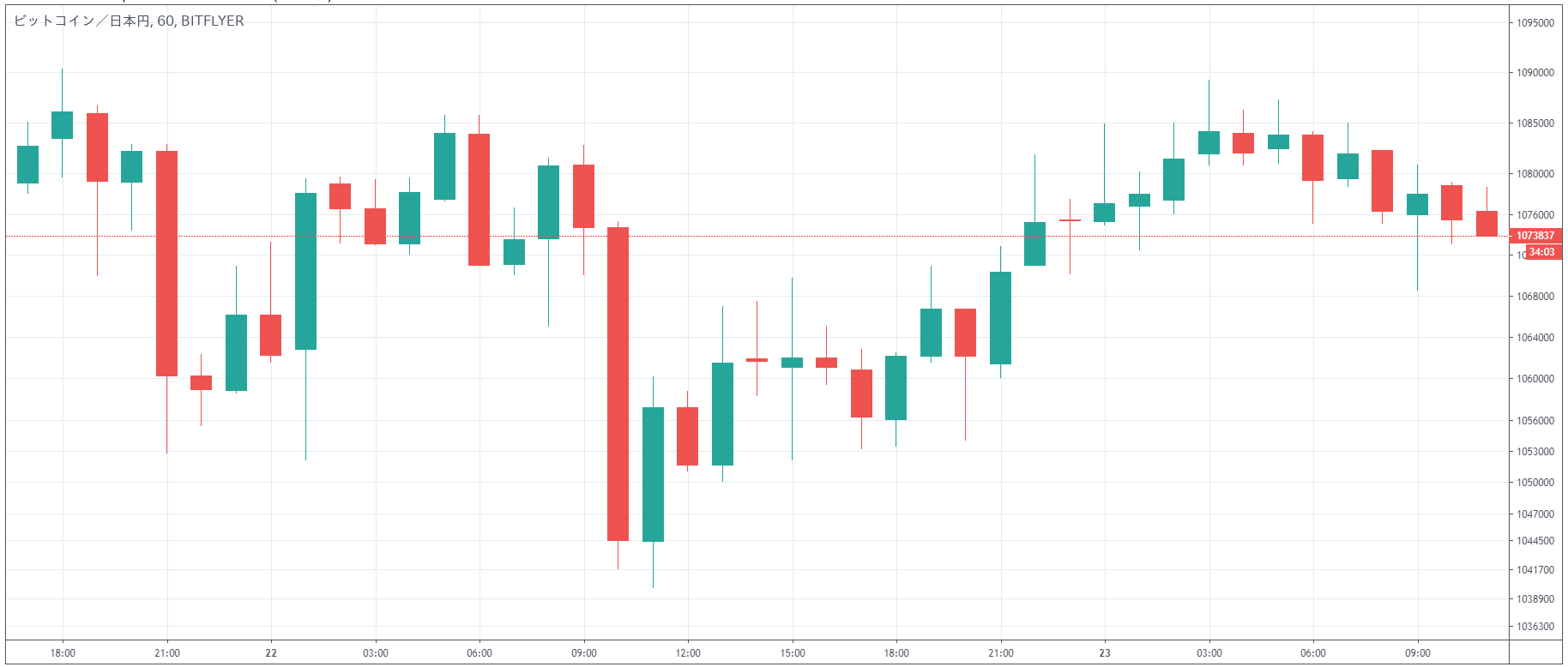 ・ビットコイン円は前日104万円を割り込んだが、そこから持ち直して上昇に転じ、107万円台で推移。