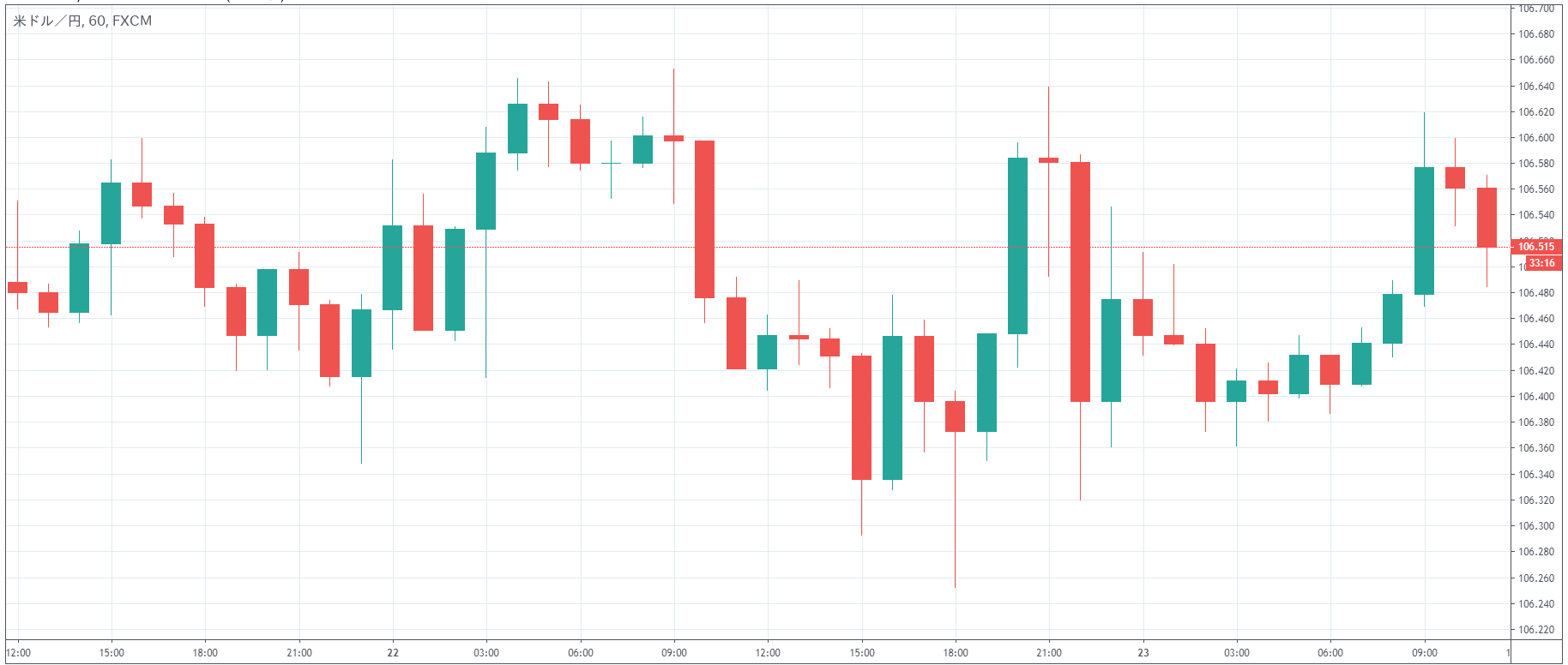 ・パウエルFRB議長の講演を控えて様子見ムードが強まり、ドル円は小動き。106円台半ばで推移している。