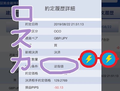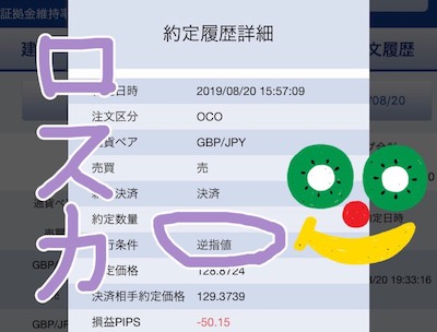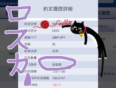 8月21日(水)に売りましたが、このポジションは損切りに。SBIFXのメンテで写真は撮れず。