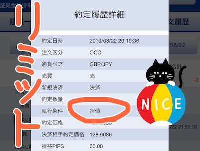 - 利益確定が60pips、損切りが−50pipsのOCO決済