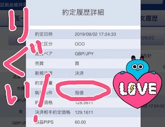 - 利益確定が60pips、損切りが−50pipsのOCO決済