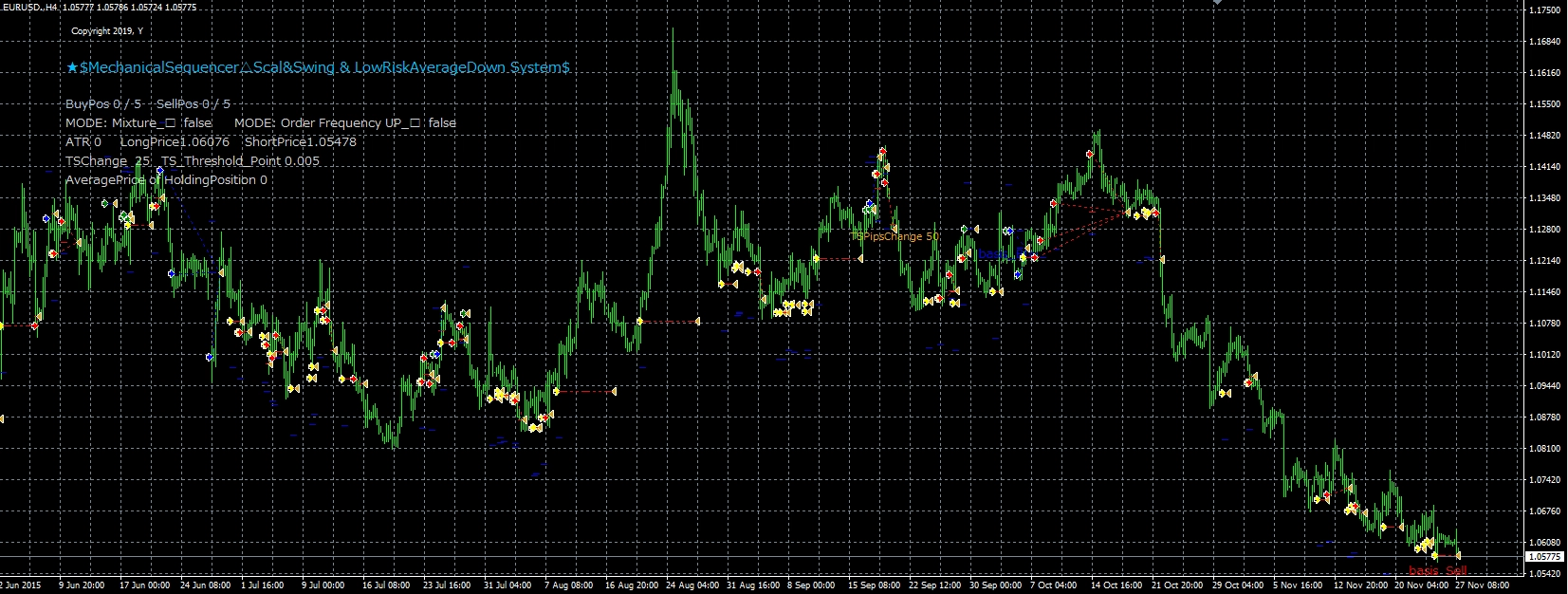 ヨッシーさんは、これまでにいろいろなタイプのEAを開発・出品していますが、その中の一つ「二刀流乱れうち」はサクソバンク証券MT4性能評価コンテストで特別賞を受賞。そこで使われているプログラミング方法、最適化の方法をブラッシュアップして開発されたのが「メカニカルシーケンサー」です。