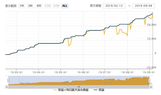 ドル円を対象とした早朝時間帯の逆張りスキャルタイプのEAで、トレード頻度が高く、収益性の面においても優れているのが特徴。9月5日時点での勝率はなんと100%(96連勝)と、圧倒的なパフォーマンスを見せています。