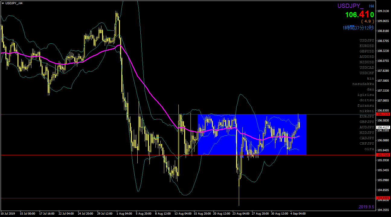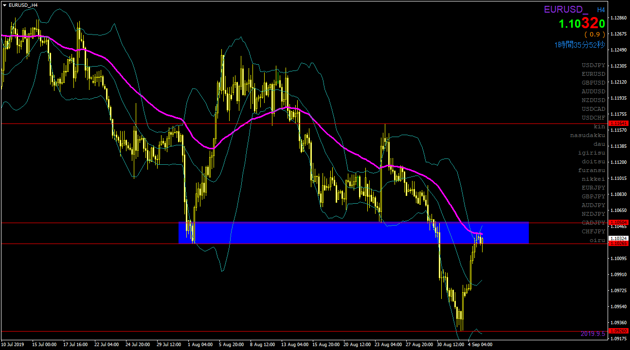 この青い価格帯は、4時間足での目立つ二つの安値に水平線を引いて
