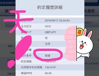 - 利益確定が60pips、損切りが−50pipsのOCO決済