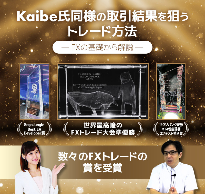 特に注目いただきたいことは、トレード大会で準優勝した時も普段のKaibe氏のトレードでも行なわれているEAを使ったFX取引の成績を、更に向上させるEA稼働の停止方法、停止タイミングを詳細に知っていただくことができという点です。