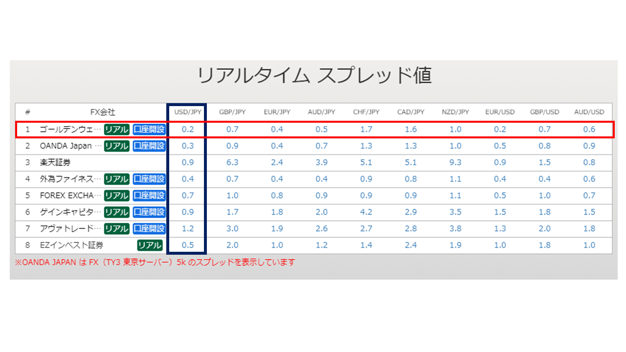 確かに、ドル円「0.2銭」と圧倒的な狭さのスプレッドが提供されています!