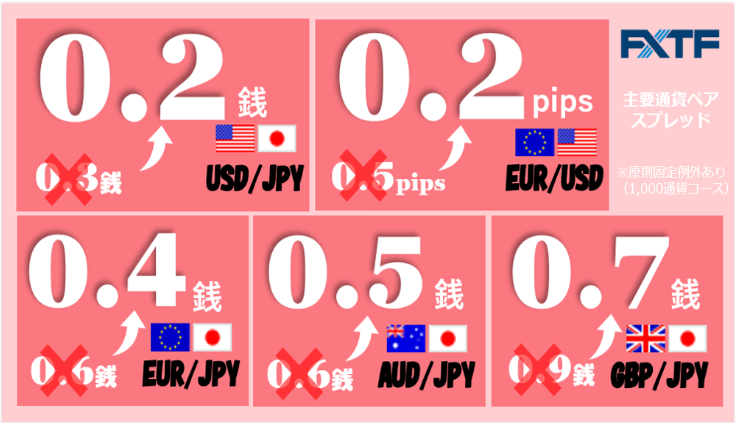これはゴールデンウェイ・ジャパン社が提供している「原則固定」として提示される主要通貨ペア5つについての売買スプレッドを縮小し、FX業界最狭水準の実現に挑戦するというものです。
