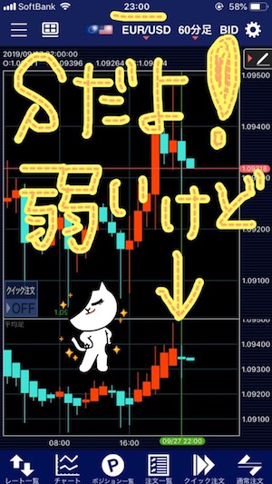 - 23時にユーロドルのチャートを開き、22時台の1時間平均足が反転している場合のみエントリー