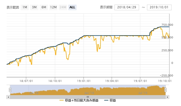 EAにはいろいろなタイプがあり、中にはなかなかエントリーせずに利益を出すまでに時間がかかるものも存在しますが、「B,Simpact」ではそんな心配は皆無です。とにかく取引回数が多いので、使っていて飽きません。