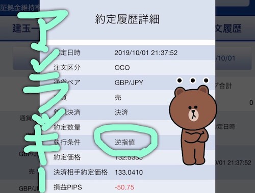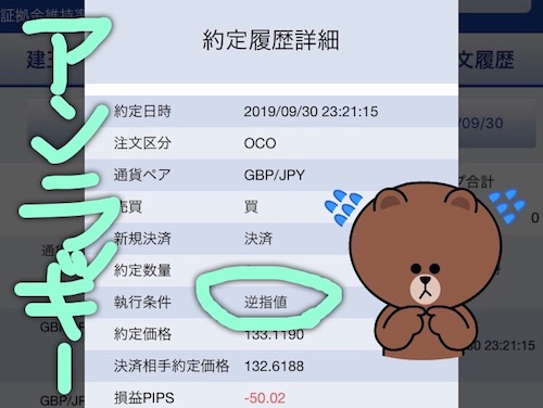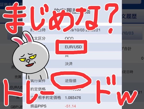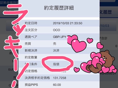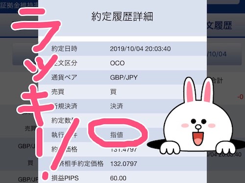 - 利益確定が60pips、損切りが−50pipsのOCO決済