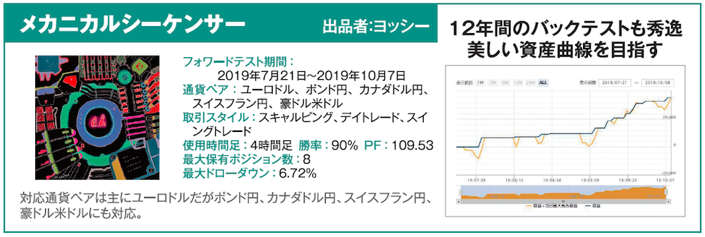 そんなわけで、現在ゴゴジャンに出品されているEAの中から絶好調といえる成績を誇るEAを10本ピックアップ。波乱が予想される年末に向け、EAの特徴をしっかり把握して戦略的な資産運用を計画してみてはいかがだろう。