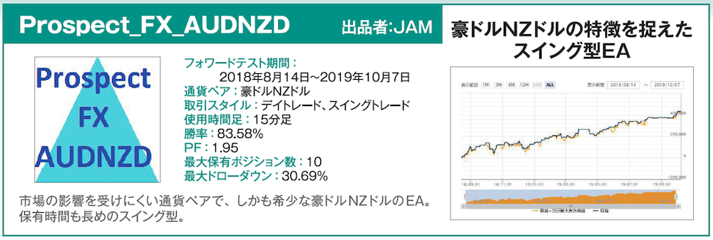 市場の影響を受けにくい通貨ぺアで、しかも希少な豪ドルNZドルのEA。保有時間も長めのスイング型。