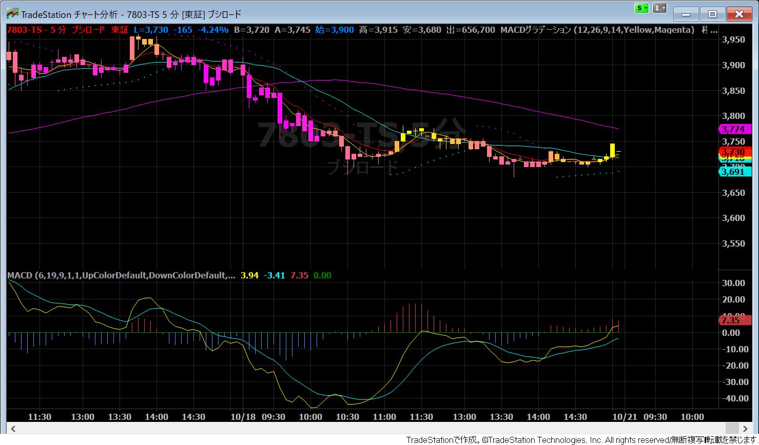 10月17日11:30から10月18日大引けまでの5分足チャート