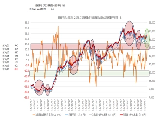 続いての資料は、10/11の『外国人累計売買状況』です。日本の株式市場は、外国人の売買比率が大勢を占めることは投資家の方であればご存知の通りですが、ここではその様子が分布グラフを用いて表示されています。計算上はすべて買い戻されると日経平均は 2万4072円 に上昇するという井上哲男氏の解説です。日本株の勢いを象徴する資料と言えるのではないかと思いました。
