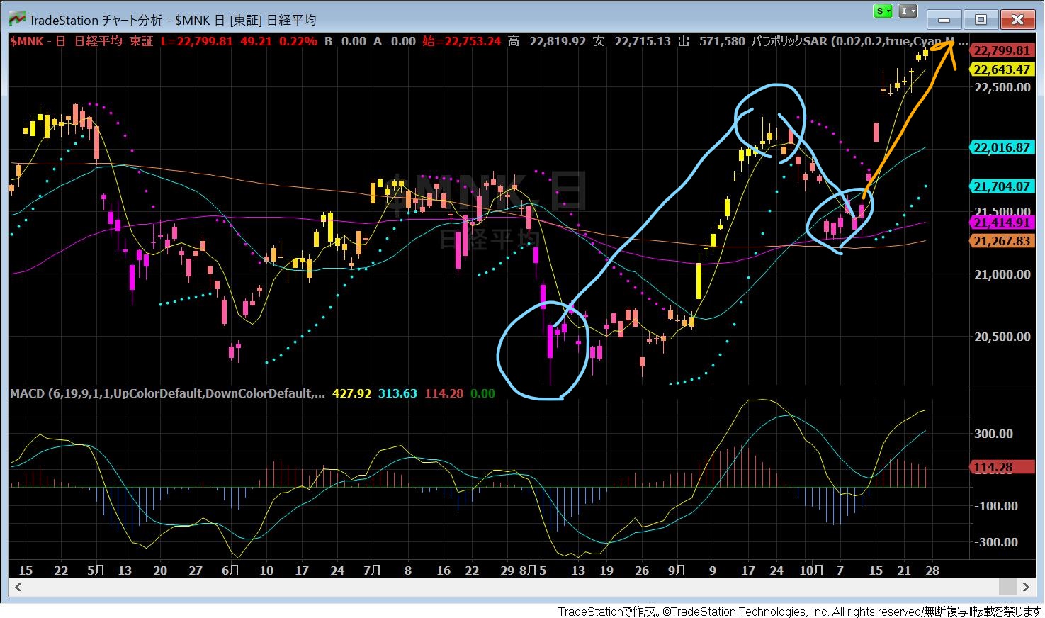 それでは日経平均の日足から考えてみましょう。