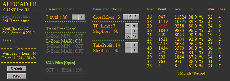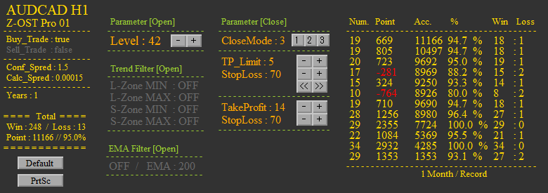 今回は、新しく追加されたAUDCADペアのロングトレードのみの設定値。