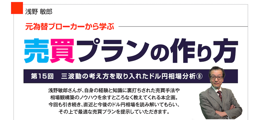 浅野敏郎さんが、自身の経験と知識に裏打ちされた売買手法や相場観構築のノウハウを余すところなく教えてくれる本企画。今回も引き続き、直近と今後のドル円相場を読み解いてもらい、その上で最適な売買プランを提示していただきます。