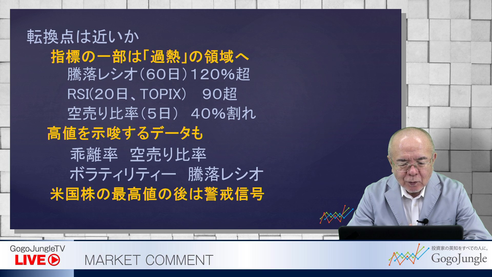 ・指標の一部が「過熱」領域へ