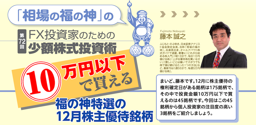 「相場の福の神」のFX投資家のための少額株式投資術|第72回 10万円以下で買える福の神特選の12月株主優待銘柄[藤本誠之]
