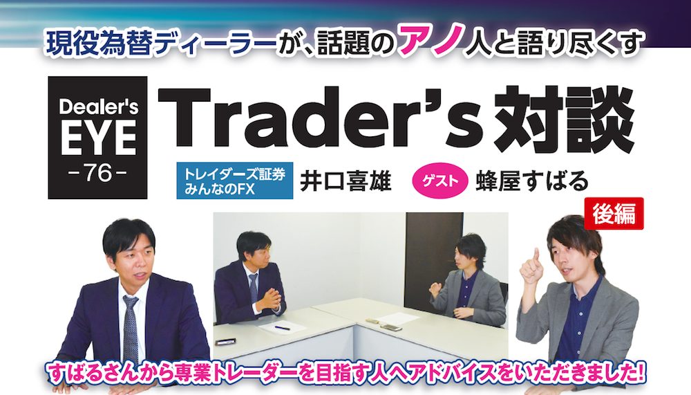 現役為替ディーラーが、話題のアノ人と語り尽くす Trader’s対談|ゲスト 蜂屋すばる 後編[トレイダーズ証券みんなのFX 井口喜雄]