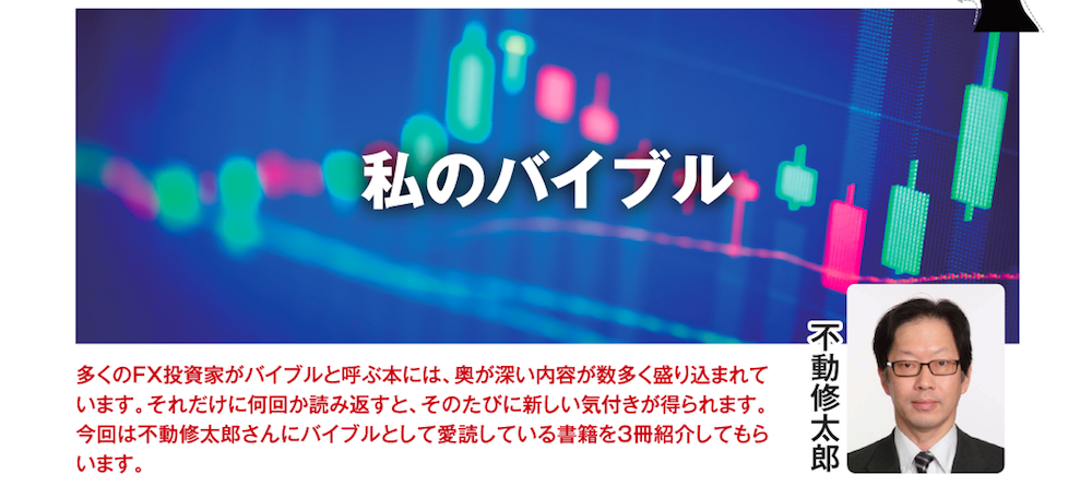 多くのFX投資家がバイブルと呼ぶ本には、奥が深い内容が数多く盛り込まれています。それだけに何回か読み返すと、そのたびに新しい気付きが得られます。今回は不動修太郎さんにバイブルとして愛読している書籍を3冊紹介してもらいます。