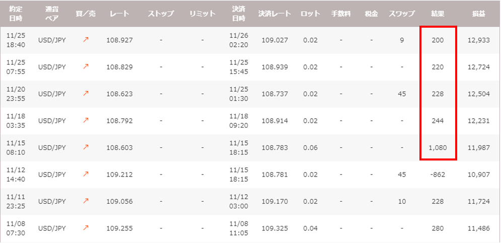 ポンドドルEAと同様に、ほぼ同じ時間帯で取引した結果を比較してみると、リアル口座の方が利益を獲得していることが分かります。これまでにインタビューに答えていただいたMKさんは自動売買、川崎ドルえもんさんは裁量のトレーダーですが、スプレッドが狭くなることをお二人とも好意的に捉えていました。この結果を見ると、スプレッドの縮小が利益獲得に与える結果は大きく、特にEA運用者にとっては大きなメリットになりそうです。