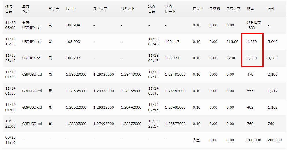 前回はポンドドルのEA結果を比較しましたが、そのときも同時間帯の取引でゴールデンウェイ・ジャパン社で運用しているリアル口座の方が他社のデモ口座よりも大きく利益を獲得していることが確認できました。今回は業界最狭水準の0.1銭で提供しているドル円でEAを運用してみました。
