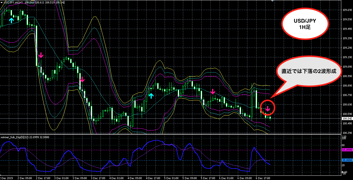 また1時間足ではサブウィンドウのWinner値にも着目します。