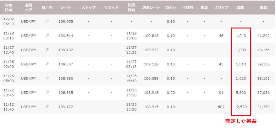 今回計測した直近の取引回数はほとんど同じでしたが、デモ口座では一度損失を出している一方で、リアル口座の取引では直近6戦6勝と安定した勝率を誇っています。先に見たように、ゴールデンウェイ・ジャパン社では原則固定の低スプレッドが提供されているので、スプレッドの影響を受けず、安定した取引を行えているからと考えられます。