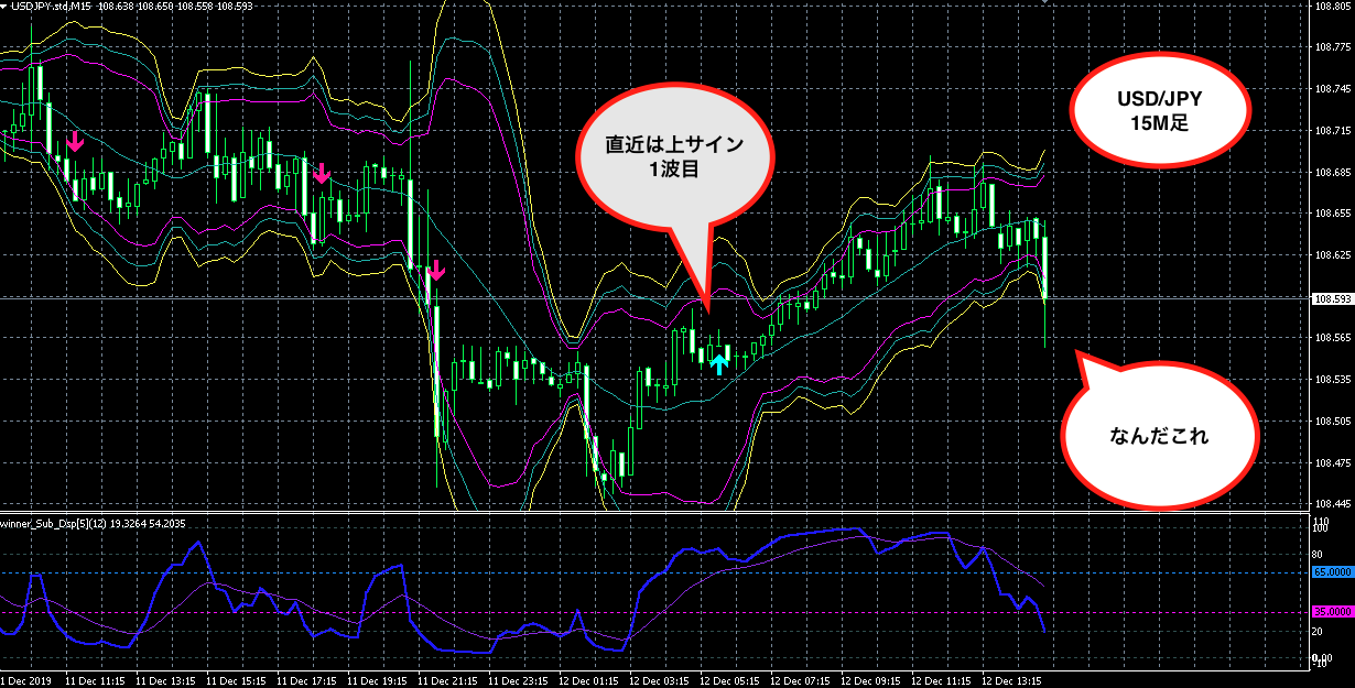 なかなか1時間足と15分足が同方向に動いてくれることが少ないですよね