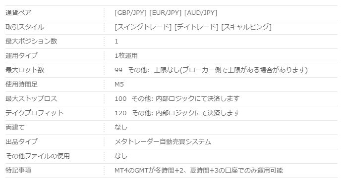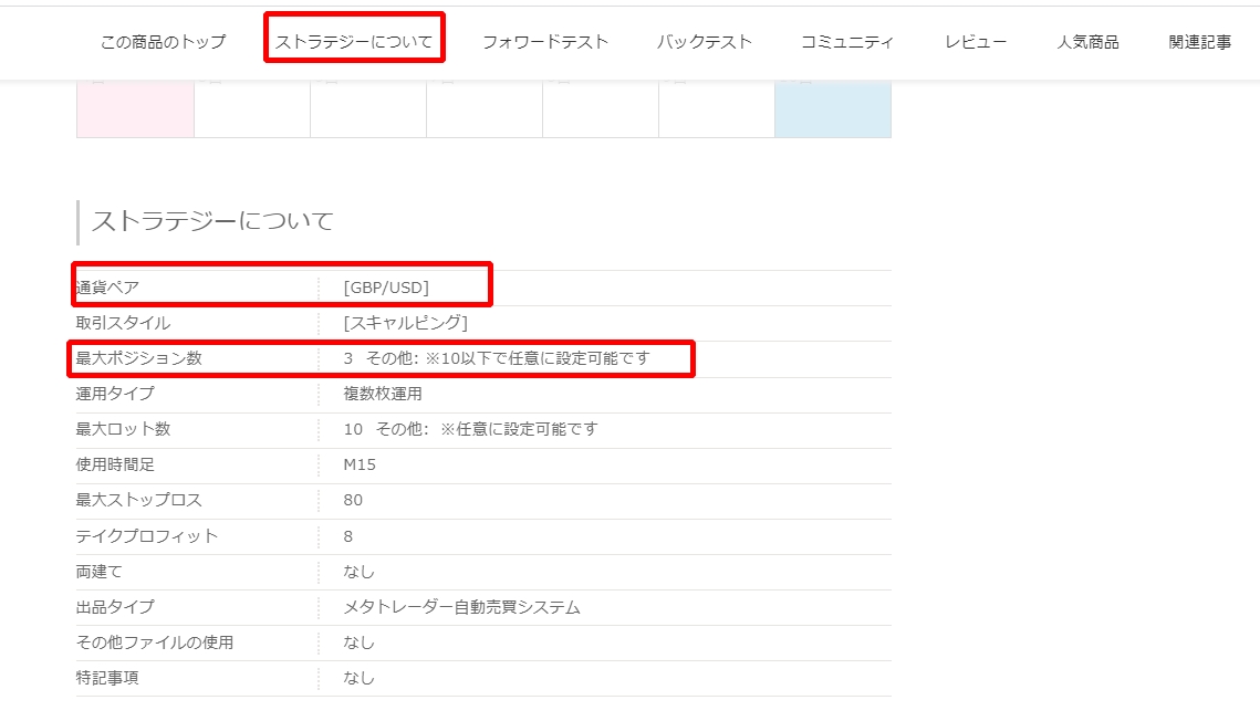 GogoJungleの販売ページでは、「ストラテジーについて」でEAの概要がわかります。