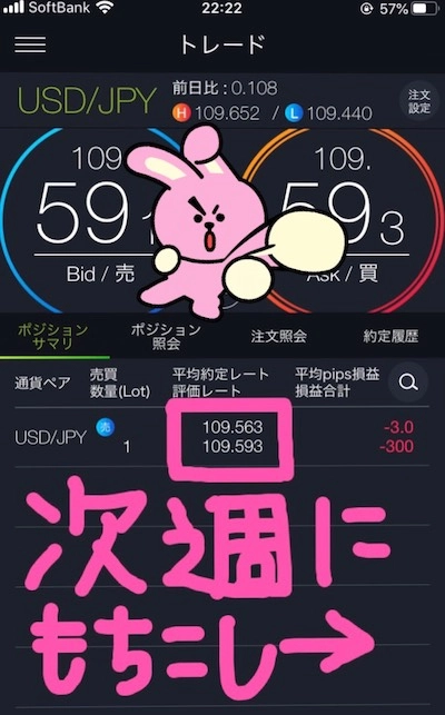 トータルで5勝13敗の+120pips。1ポジションを翌週に持ち越しました。
