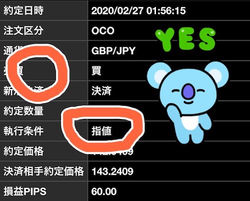- 利益確定は60pips、損切りは50pipsのOCO決め打ち