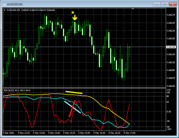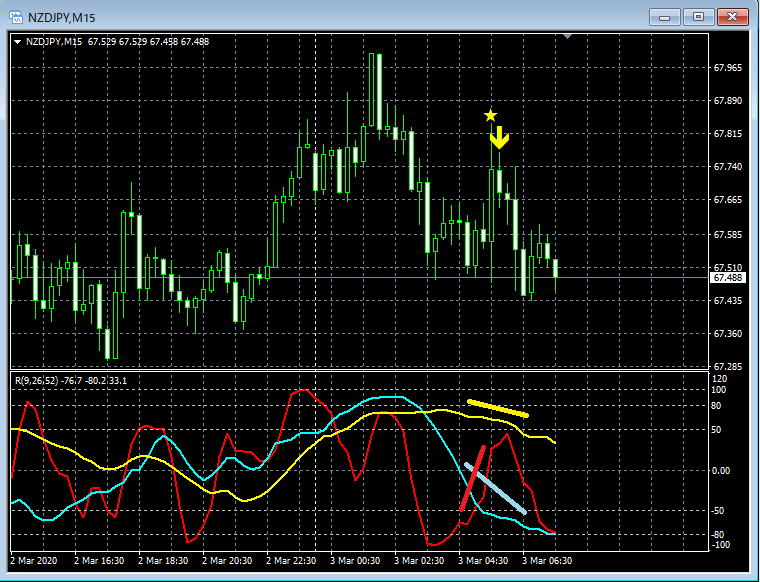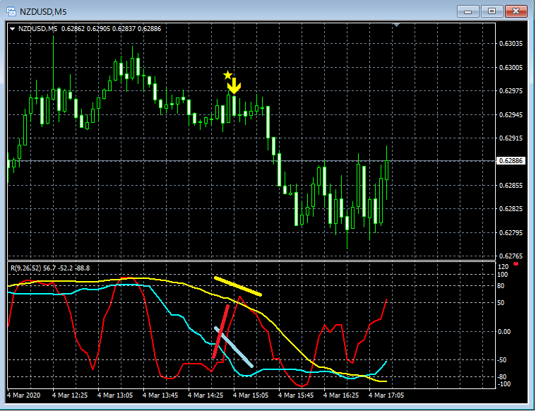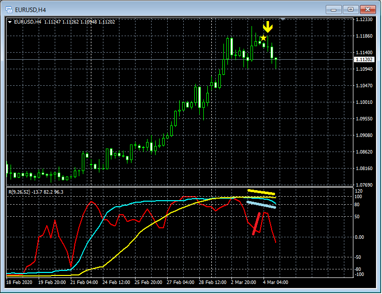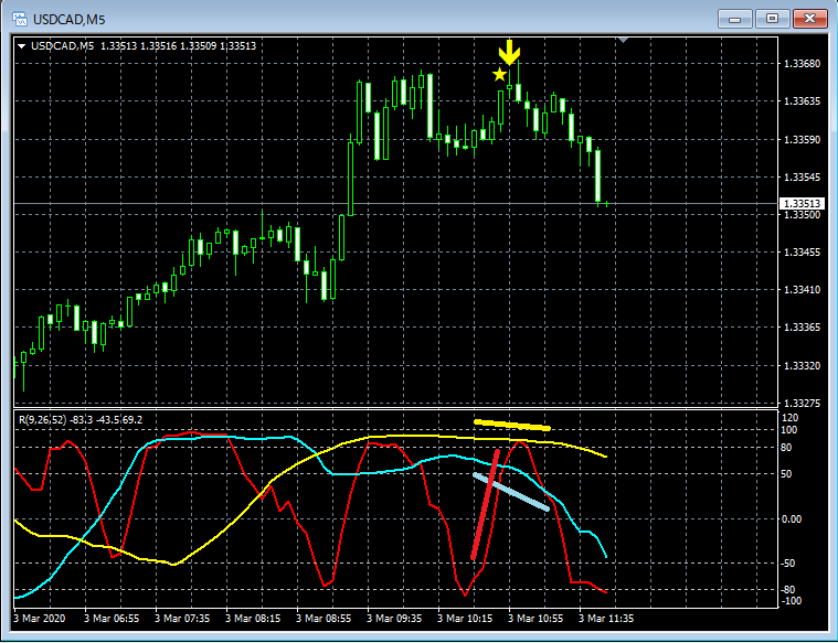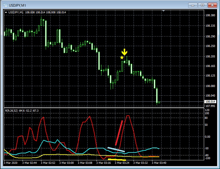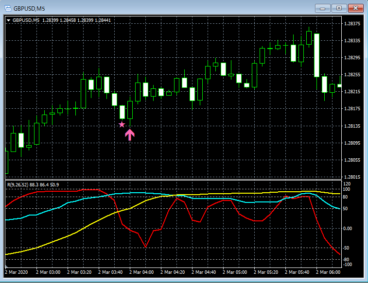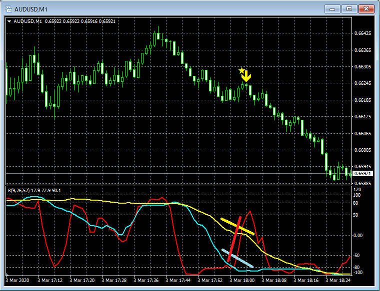 下図は、今週(3月2日~3月6日)見られた「mBDSRのRCI2本フィルターバージョン」のサインの例です。