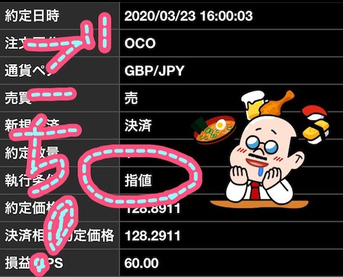 - 利益確定は60pips、損切りは50pipsのOCO決め打ち